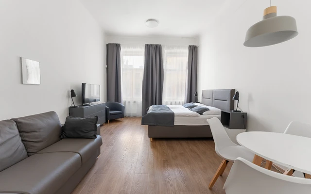 This cosy and sunny 20 m² apartment is ideal for singles or couples. The apartment faces the street and offers a beautiful view of the historical sights.